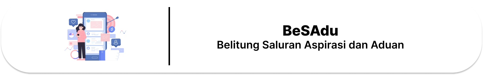 BeSAdu : Sebuah sistem yang dikembangkan oleh Pemerintah Kabupaten Belitung untuk memfasilitasi masyarakat dalam menyampaikan aspirasi, pengaduan, dan keluhan terkait layanan publik. BESADU dirancang untuk menjadi saluran interaktif antara masyarakat dan pemerintah, sehingga segala bentuk masalah atau saran mengenai layanan publik dapat ditindaklanjuti secara transparan dan efisien.
